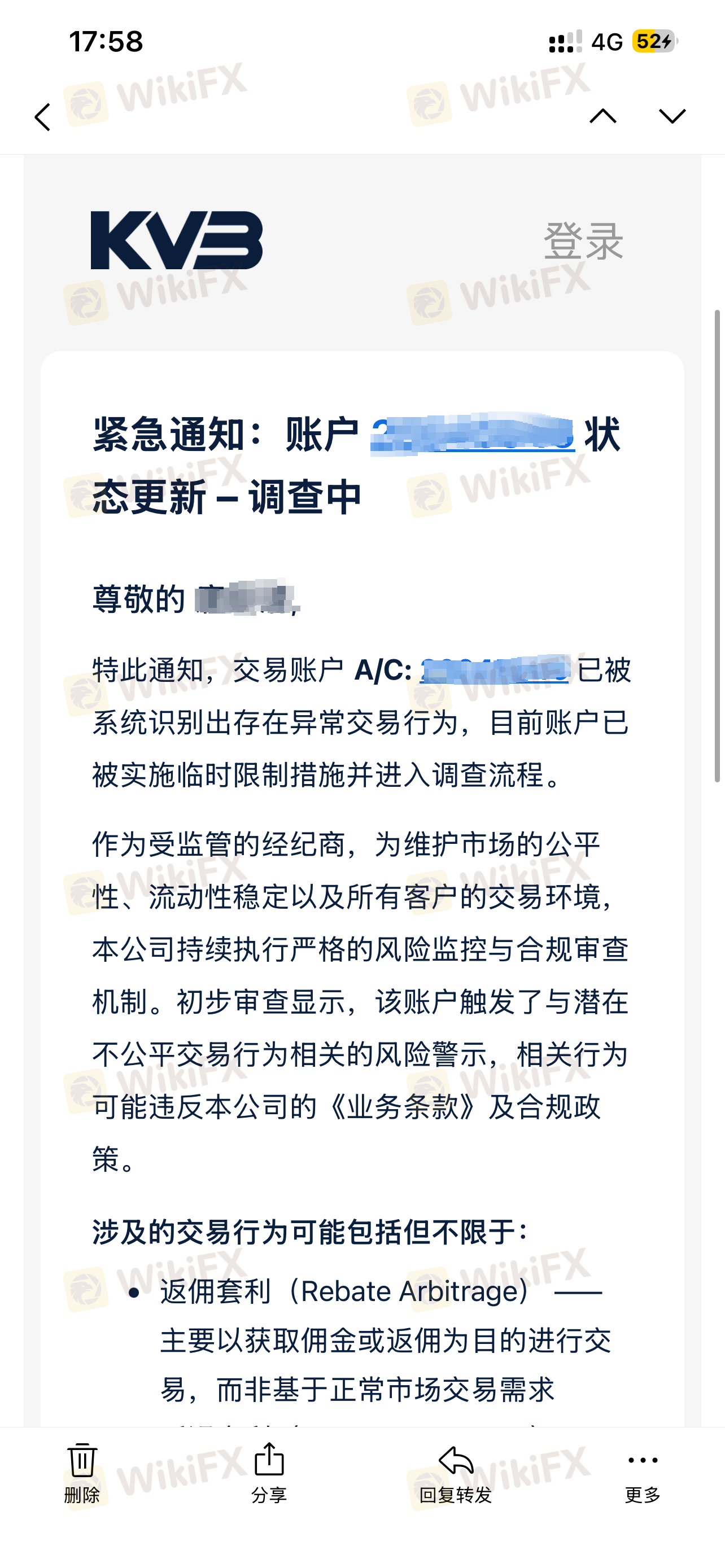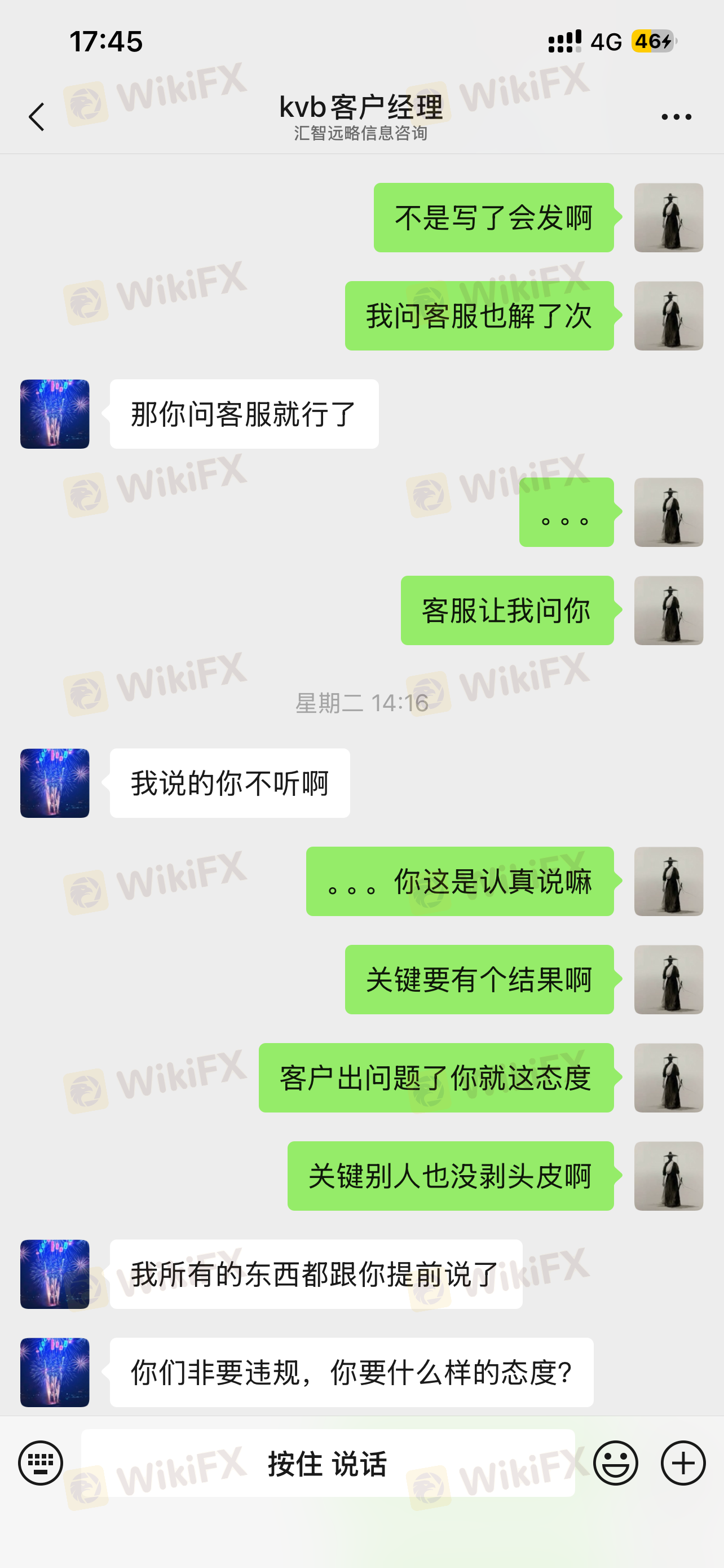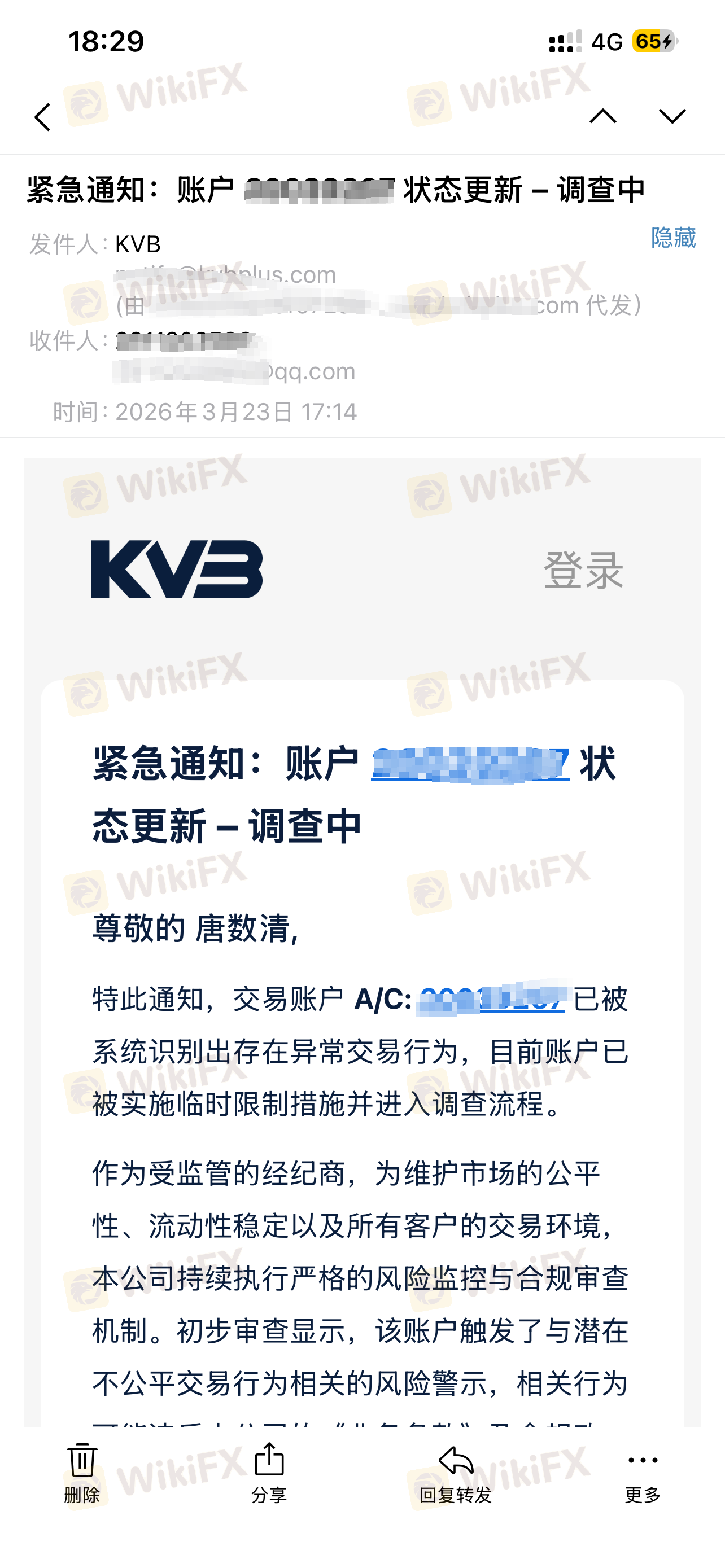 KVB، لقد تجاوزتم الحدود! قدمت طلب سحب وفقًا للإجراءات العادية وقدّمت جميع المستندات المطلوبة. لكنكم كنتم متساهلين وقدمتم أعذارًا مختلفة، ببساطة منعتموني من سحب أموالي. منذ وقت تقديم الطلب وحتى الآن، في كل مرة اتصلت بخدمة العملاء، تلقيت ردودًا غير مجدية، إما أن الطلب قيد المراجعة، أو أن هناك مشكلة في النظام، أو أنكم ألقمتم اللوم على آخرين. لم يتمكن أحد من حل مشكلتي بشكل حقيقي. بالنظر إلى البيانات التي قدمتموها، فإن الفروقات تتقلب بشكل كبير، بعيدًا تمامًا عن ظروف السوق العادية. ظننت أن الأمر كان عارضًا، لكنني اكتشفت لاحقًا أن هذا يبدو أمرًا معتادًا على منصتكم. تصرفاتكم تمثل خداعًا كاملًا للمستثمرين مثلنا! الأموال التي استثمرتها كانت مدخراتي ومدخرات عائلتي التي كدحنا من أجلها، ومع ذلك فإنكم تدوسون بوقاحة على ثقتنا وتمنعوننا من سحب أموالنا.