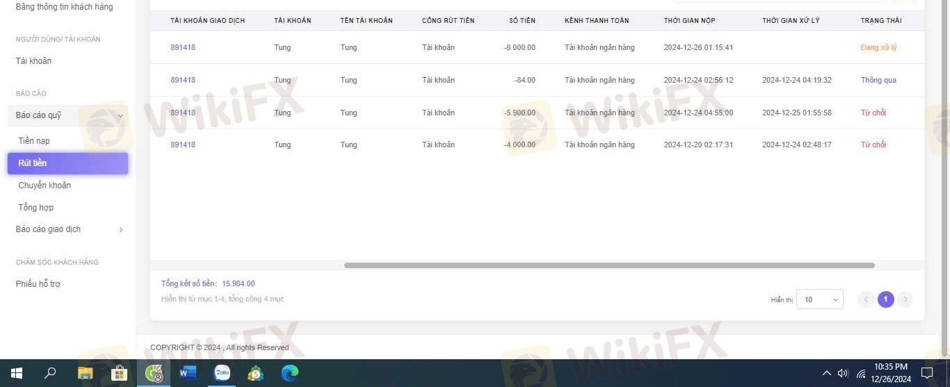 Tôi thực hiện rút tiền trên website chính thức vào ngày 3/1/2025 nhưng đến nay sàn vẫn chưa có bất kì biện pháp giải quyết nào.