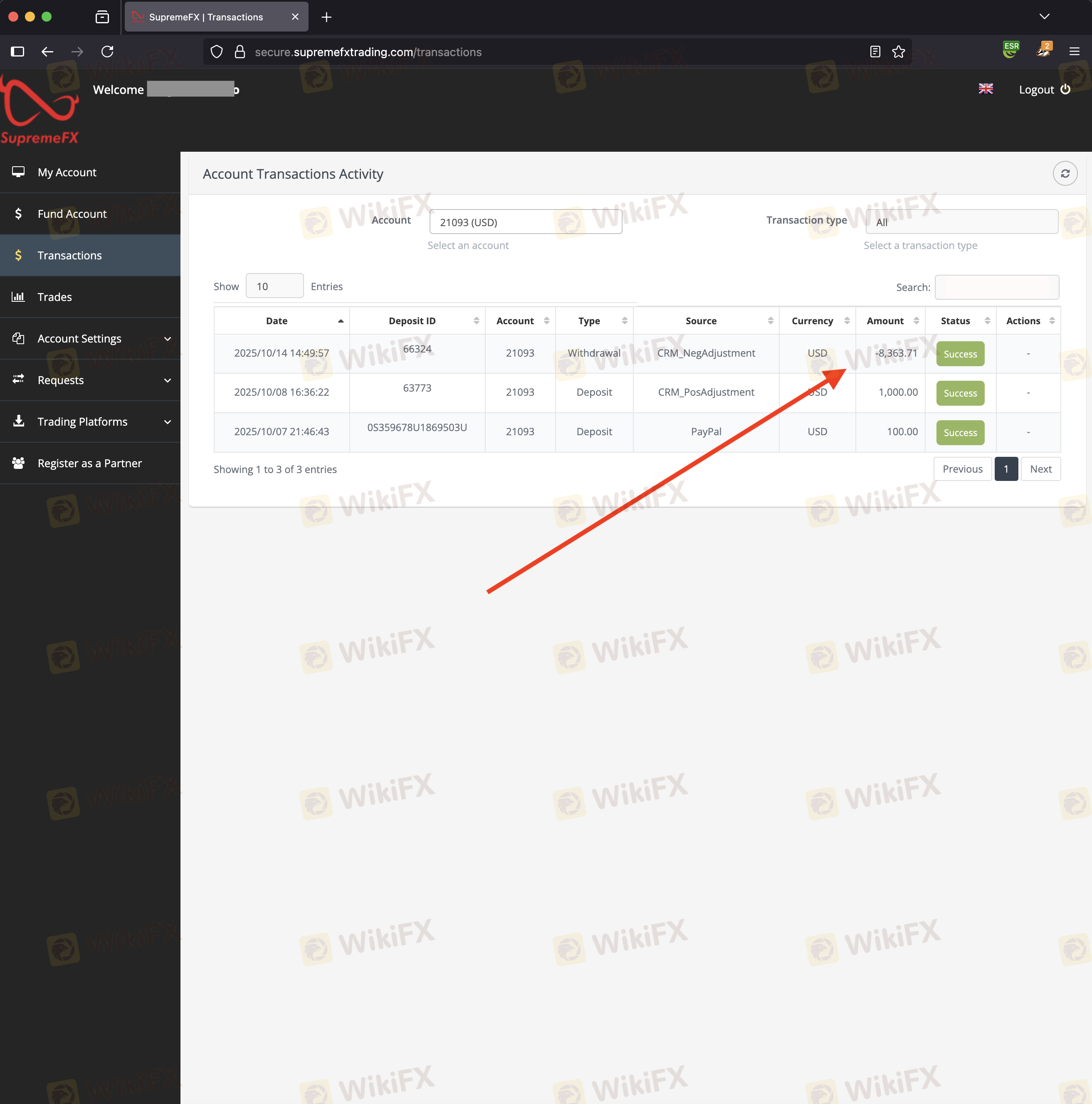 يقدم Supreme FX خيارات إيداع وسحب لتلبية احتياجات عملائهم المتنوعة. من بين الطرق المتاحة، خياران شائعان هما PayPal وABSA Bank.