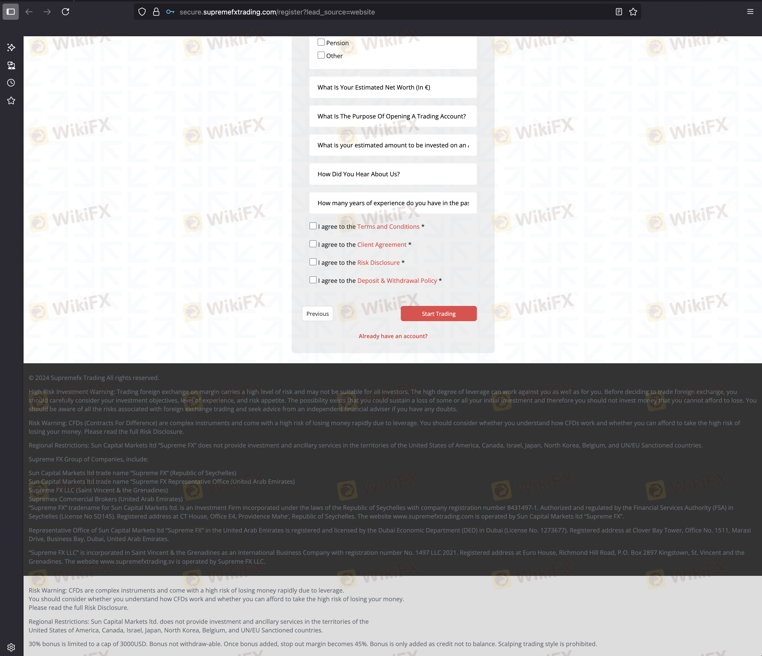 Supreme FX لديها قسم متخصص للأسئلة الشائعة (FAQ) على موقعهم الإلكتروني. يهدف هذا المصدر إلى التعامل مع الاستفسارات الشائعة وتوفير معلومات ذات صلة للعملاء، مما يساعدهم على اتخاذ قرارات مستنيرة حول خدمات الشركة وعملياتها وفرص الاستثمار.