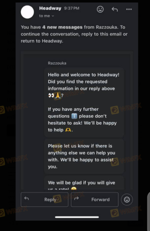 وسيط Headway هو في الواقع عملية احتيال. يتلاعبون بالصفقات، ويمنعون عمليات السحب، ويغلقون الحسابات دون أي دليل ملموس على متى تم تحقيق أرباح ضخمة. يرجى التحقق أولاً قبل استخدامهم، إما أن يكون ترخيصهم مستنسخًا أو مزيفًا