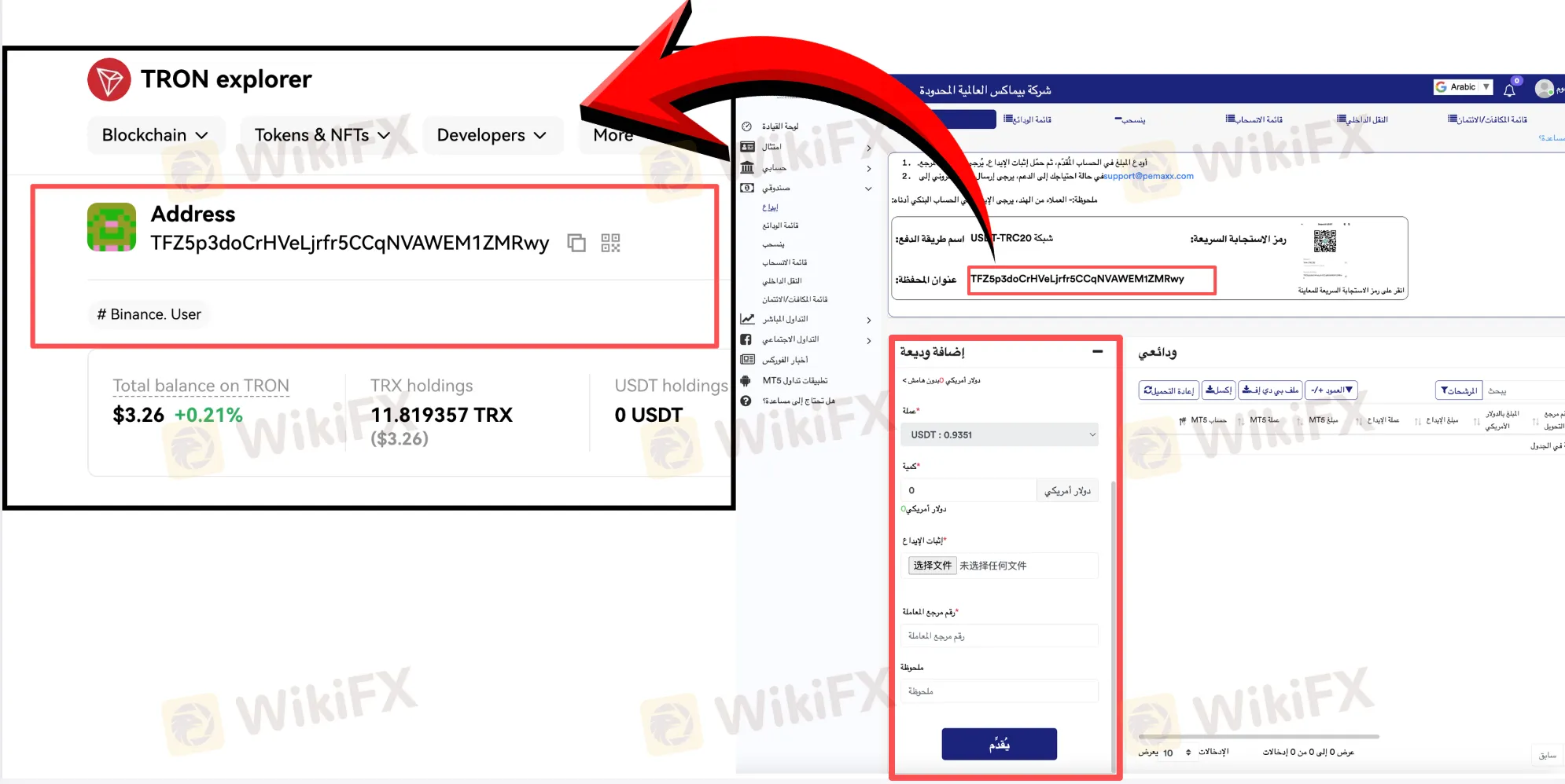 عندما حاولنا الإيداع عبر شبكة TRON، لم يقم النظام بإنشاء عنوان محفظة فريد ومنفصل. بدلاً من ذلك، يوجه الأموال إلى عنوان منصة تبادل عام. يُطلب من المستخدمين بعد ذلك رفع “لقطة شاشة” للمعاملة يدوياً وإدخال الرقم المرجعي.