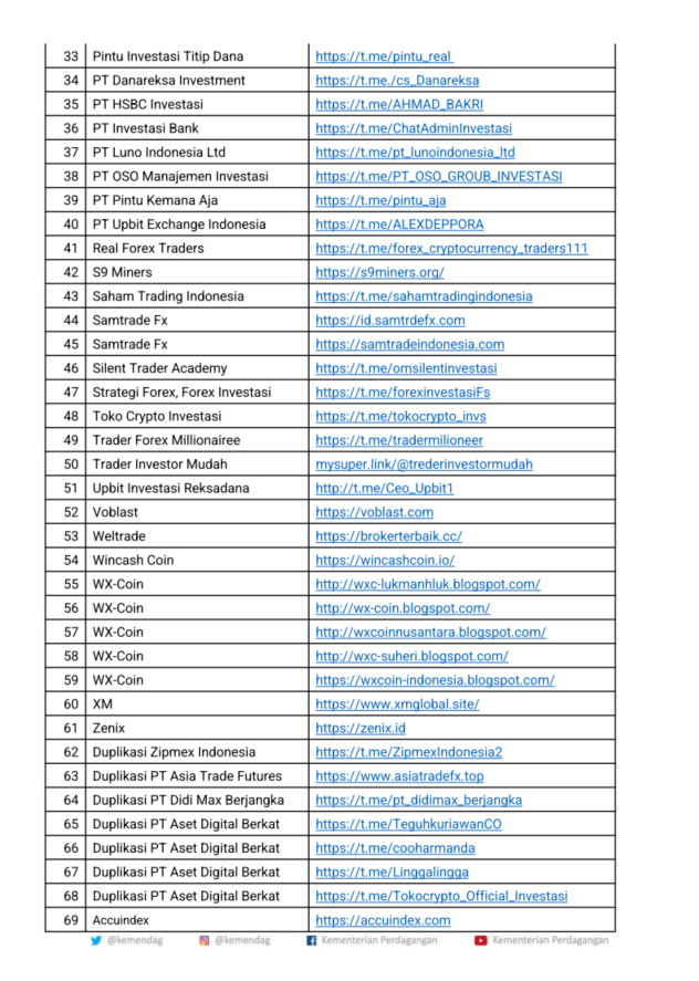 جاكرتا ، 20 سبتمبر 2022 - قامت وزارة التجارة من خلال وكالة الإشراف على تداول السلع الآجلة (Bappebti) بحظر 760 كيانًا يتكون من 682 نطاقًا لمواقع الويب ، و 48 صفحة وسائط اجتماعية ، و 17 تطبيقًا على Google Play ، و 12 تطبيقًا على Appstore ، مثل بالإضافة إلى محطة واحدة للنشاط في مجال تجارة السلع الآجلة (PBK) التي ليس لديها تصريح من CoFTRA خلال الفترة من يناير إلى أغسطس 2022. تم تنفيذ الحظر بالتعاون مع وزارة الاتصالات وتكنولوجيا المعلومات. "يجب أن يحصل كل طرف يمارس أنشطة تداول العقود الآجلة في إندونيسيا على تصريح من Bappebti وأن يخضع لأحكام القوانين واللوائح المعمول بها في إندونيسيا ويلتزم بها. على الرغم من أنهم يدعون أن لديهم شرعية من المنظمين في الخارج ، إلا أن الشركات التي تقدم عروض في مجال تجارة العقود الآجلة في إندونيسيا لا تزال مطالبة بالحصول على تصريح من CoFTRA "، قال Plt. رئيس CoFTRA Didid Noordiatmoko. وأضاف ديديد ، تجري CoFTRA بشكل روتيني المراقبة عبر الإنترنت والإشراف على مجالات مواقع الويب وحسابات وسائل التواصل الاجتماعي التي تقوم بالترويج والإعلانات والعروض في قطاع CBA بالإضافة إلى تطبيقات الكيانات التي تنفذ أنشطة تجارية في قطاع CPBP دون الحصول على إذن من CoFTRA. "هذه المراقبة والمراقبة بالإضافة إلى الحجب هي خطوة لمنع الخسائر المحتملة على المجتمع نتيجة لأنشطة CBA دون الحصول على تصريح من CoFTRA. بصرف النظر عن ذلك ، فإنه يهدف أيضًا إلى توفير اليقين القانوني للمجتمع والفاعلين التجاريين في قطاع CPB ". ذكّر ديديد بأن التعامل مع وسيط مستقبلي ليس لديه رخصة عمل من CoFTRA أمر محفوف بالمخاطر. لا يمكن لـ CoFTRA بصفتها الجهة المنظمة أن تسهل على العملاء إجراء الوساطة في حالة حدوث نزاع بين العميل والكيان غير المرخص له. وأضاف Aldison ، رئيس مكتب اللوائح القانونية والإنفاذ ، أن الكيان ليس لديه أيضًا مكتب تمثيلي في إندونيسيا. إذا شعر العميل بالظلم ، فلا يمكن تحميل أي طرف المسؤولية. كما أن وجودها في الخارج ليس مؤكدًا أنه يمكن التحقق من شرعيتها. هذا يتطلب الكثير من المال في حل النزاع. "بالإضافة إلى ذلك ، لا يمكن لـ CoFTRA ضمان نزاهة الإدارة والسلامة المالية للكيان. وأوضح Aldison أن أمان الأموال المودعة كرأس مال للمعاملات لا يمكن ضمانه لأنها لا تستخدم حسابًا منفصلًا معتمدًا من قبل CoFTRA ". يُنصح الأشخاص الذين سيتعاملون في قطاع PBK أولاً بدراسة خلفية الشركة ، وإجراءات المعاملات وتسوية المنازعات ، والعقود الآجلة للسلع المعروضة ، وقانونية وسطاء العقود الآجلة ، وتوثيق الاتفاقيات المتعلقة بالمخاطر التي تواجههم ، وعدم التعرض للإغراء بسهولة بأرباح كبيرة في وقت قصير. وخارج الحدود. "قبل اتخاذ قرار بشأن إجراء أي معاملة ، عليك أولاً التعرف على ملف تعريف ومشروعية الجهات الفاعلة في قطاع الأعمال في قطاع قانون حماية المستهلك. يمكن الوصول إلى هذه المعلومات بسهولة عبر الرابط http://ceklegalitas.bappebti.go.id ، "