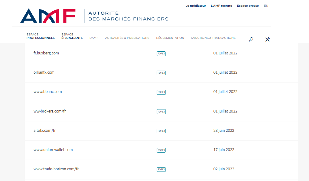 هذه قائمة بالشركات أو مواقع الويب المدرجة في القائمة السوداء لـ Autorité des Marchés Financiers (AMF) والتحذيرات و / أو اغتصاب الشركات الخاضعة للتنظيم.