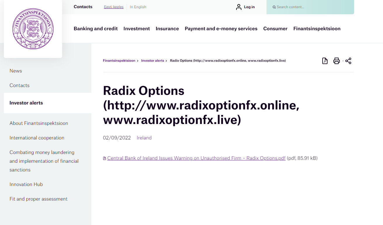 تنبيه للمستثمرين - تنبيه هيئة الرقابة المالية للمستثمرين - راديكس أوبشنز (http://www.radixoptionfx.online، www.radixoptionfx.live) 02/09/2022 أيرلندا.