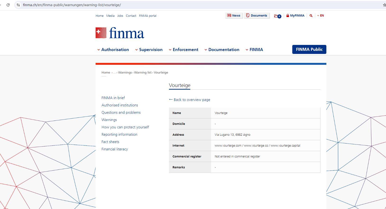 قائمة تحذيرية للشركات والأفراد غير المصرح لهم قائمة التحذير - www.vourteige.com / www.vourteige.co / www.vourteige.capital.
