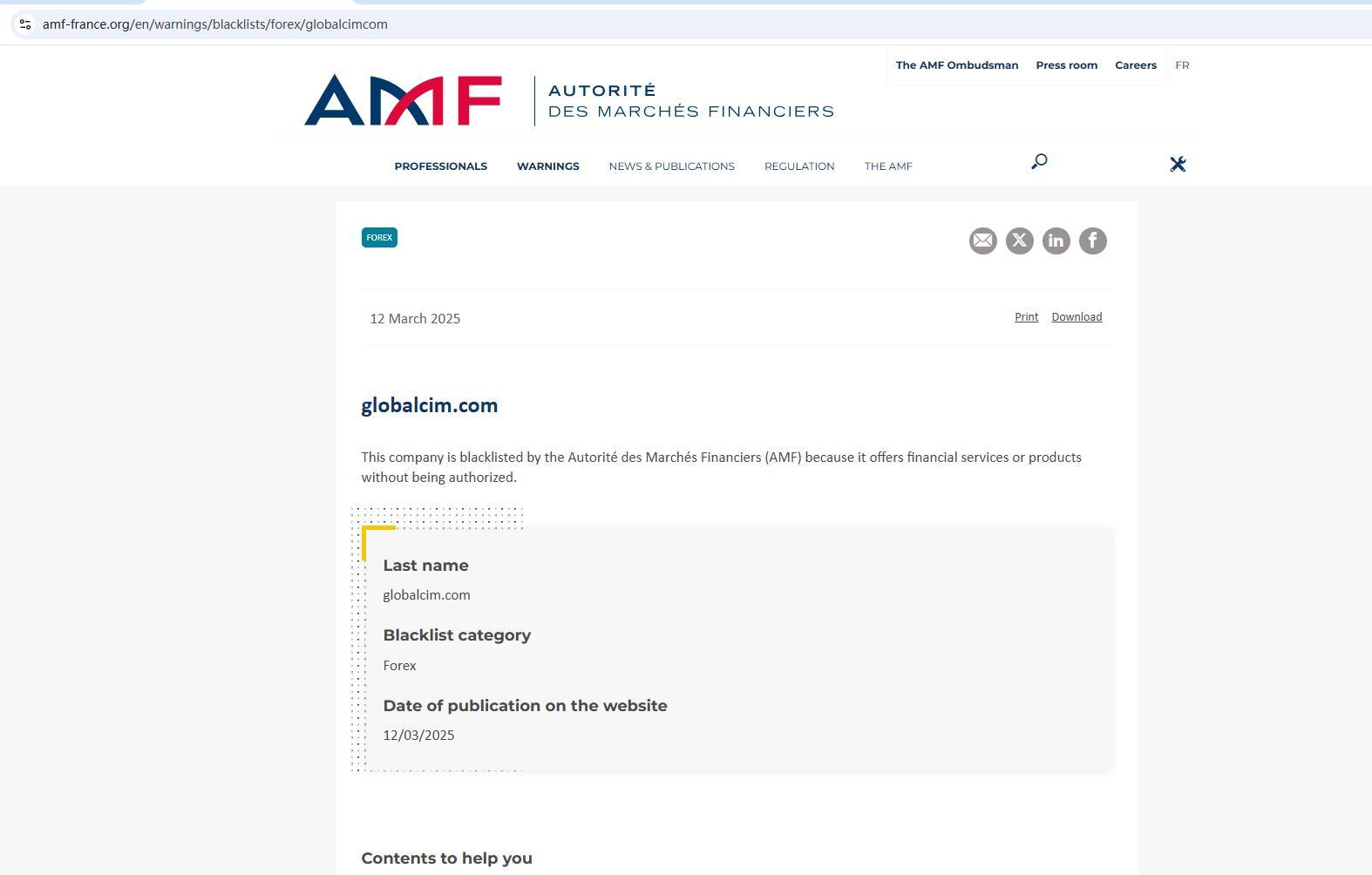 قوائم سوداء للشركات والمواقع الإلكترونية غير المصرح بها globalcim.com.
