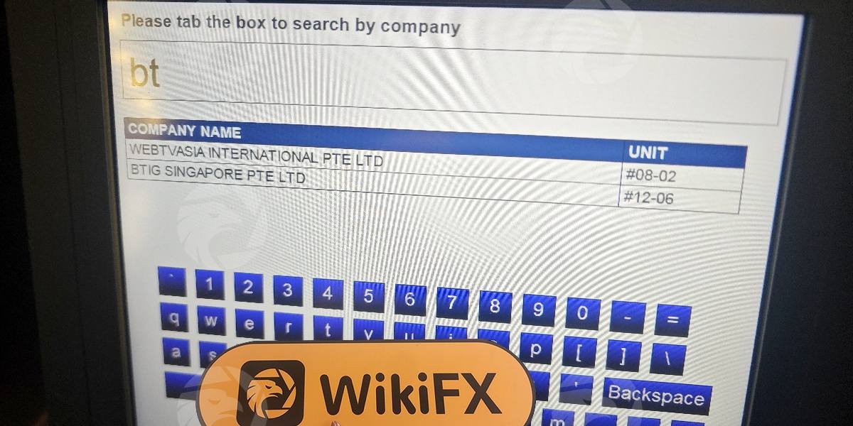 قام المفتش الميداني بزيارة وسيط الفوركس BTIG في سنغافورة كما هو مخطط. كان اسم الشركة الوسيطة والمعلومات الأخرى مرئية في عنوان العمل المعروض للجمهور، مما يشير إلى أن الوسيط لديه مقر تشغيلي حقيقي. يُنصح المستثمرون باتخاذ خياراتهم بعد النظر الشامل.