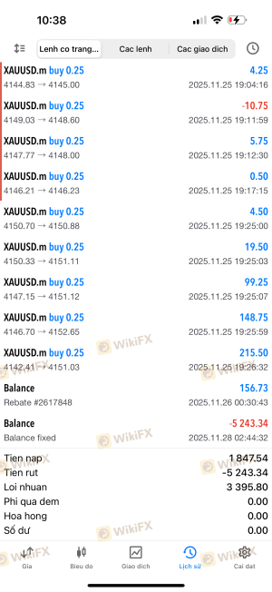 Tôi có nạp vào 1689$ để trade trên MT5 Giao dịch bình thường trong phiên, lãi lên 5243$ Sàn đã xoá cả gốc và lãi của tôi Trong khi tôi không sai phạm, vui lòng hổ trợ tôi Sàn scam khoá tiền khách