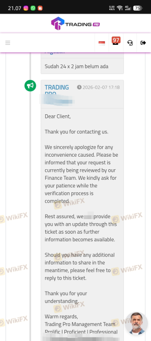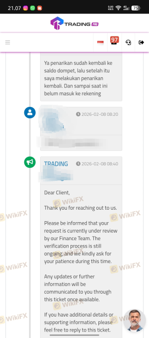 penarikan dana tertulis maksimal 24 jam, sudah lebih dari 24 jam tidak ada tindak lanjut. setelah 2 hari kemudian penarikan dibatalkan oleh pihak broker dan saldo dimasukkan ke dalam dompet. Setelah itu saya melakukan penarikan ulang, Hingga 24 jam kemudian saya menunggu belum masuk ke rekening.