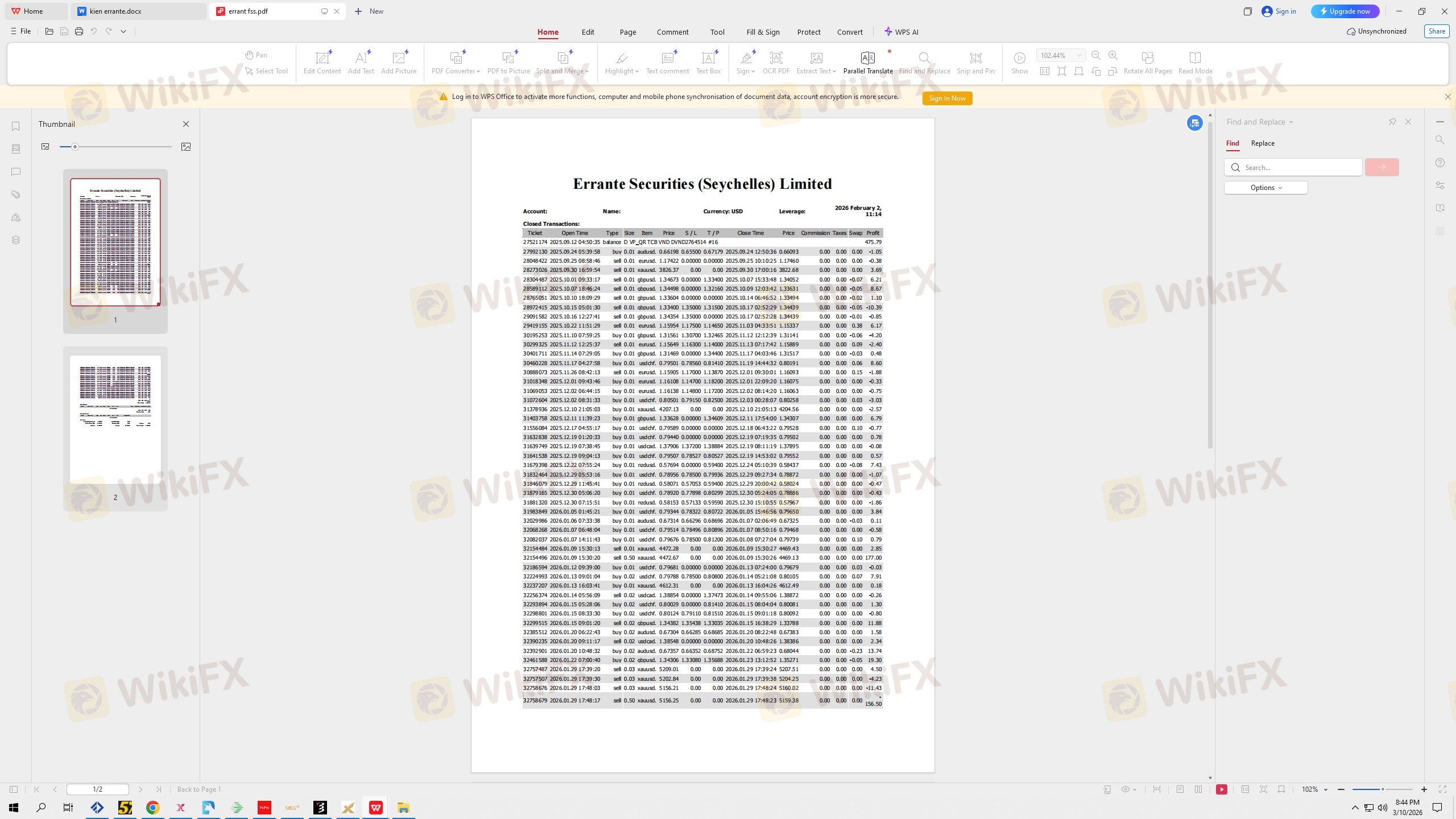 | المؤسسة المرخصة | شركة Errante Securities (Seychelles) Limited |