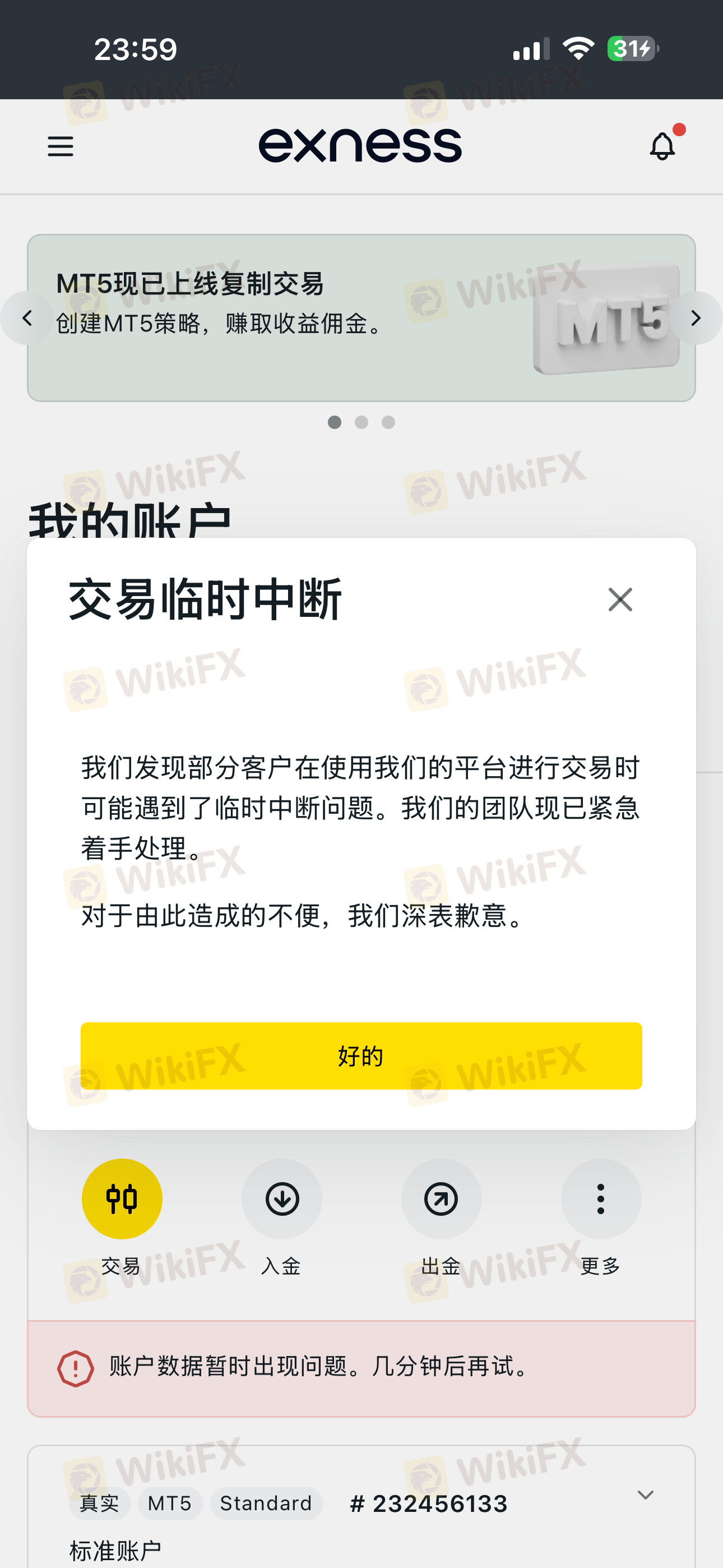 تعطل نظام ex يؤدي إلى عدم وجود بيانات الحساب وعدم القدرة على الإيداع