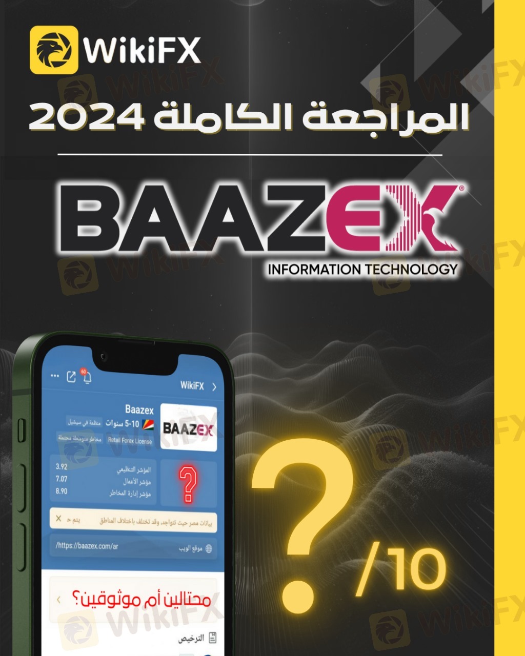 شركة Baazex مسجلة تحت شركة BAZ Capital Markets LTD، وتعمل بموجب قوانين سيشل. ما يميز Baazex هو حصولها على ترخيص من هيئة الخدمات المالية في سيشل (FSA)، مما يعني أن الشركة ملزمة بحماية أموال العملاء وضمان أن يتم التداول بنزاهة وشفافية. يتوجب على العملاء التأكد من سلامة هذا الترخيص والتحقق من مصداقيته عبر وسائل مستقلة مثل موقع WikiFX.