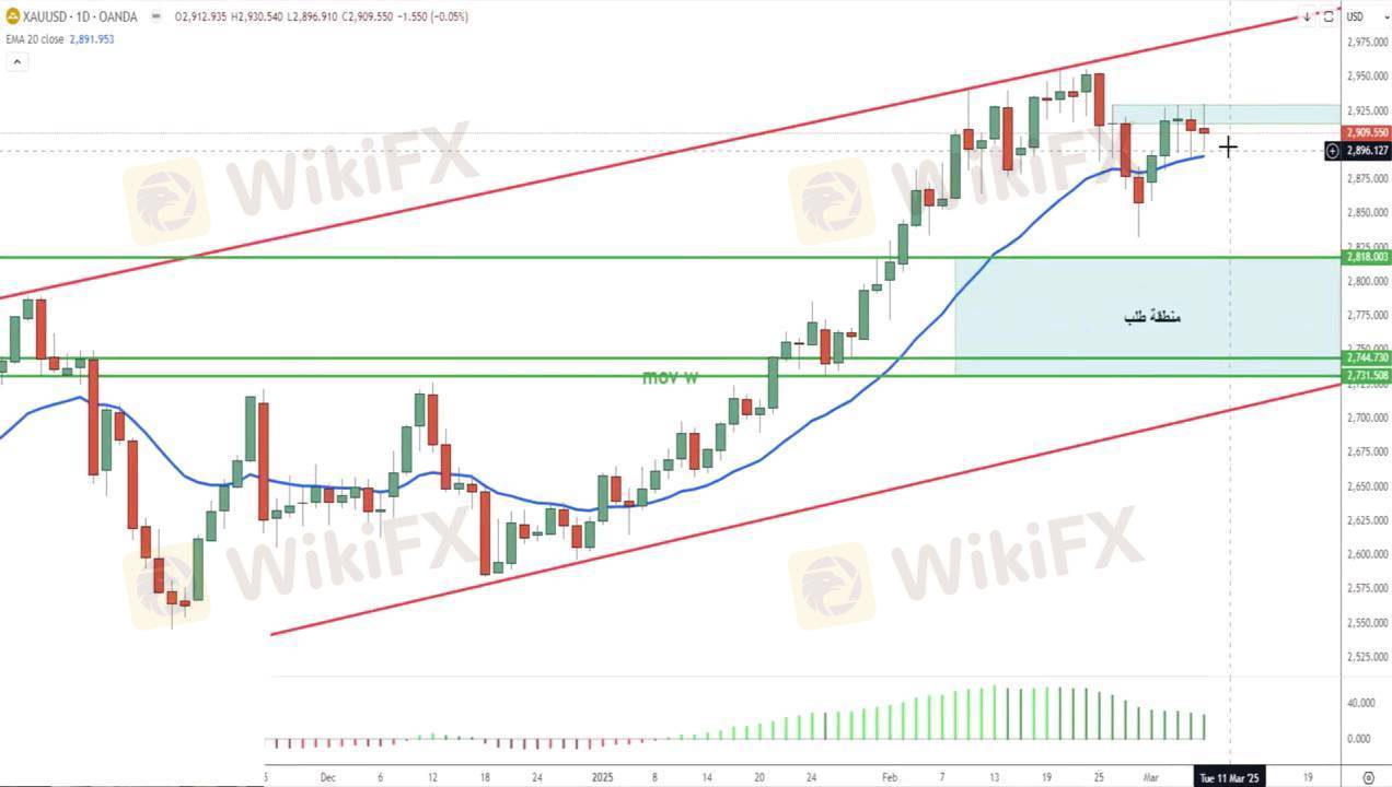 على الفريم اليومي كما هو موضح بالصور، لا يزال الذهب يتداول داخل نطاق عرضي ولم يتمكن حتى الآن من اختراق مستوى 2930 دولارًا، وهو مستوى محوري لمواصلة الصعود. في حال الفشل في الاختراق، قد نشهد عودة لاختبار مستويات 2818 دولارًا.