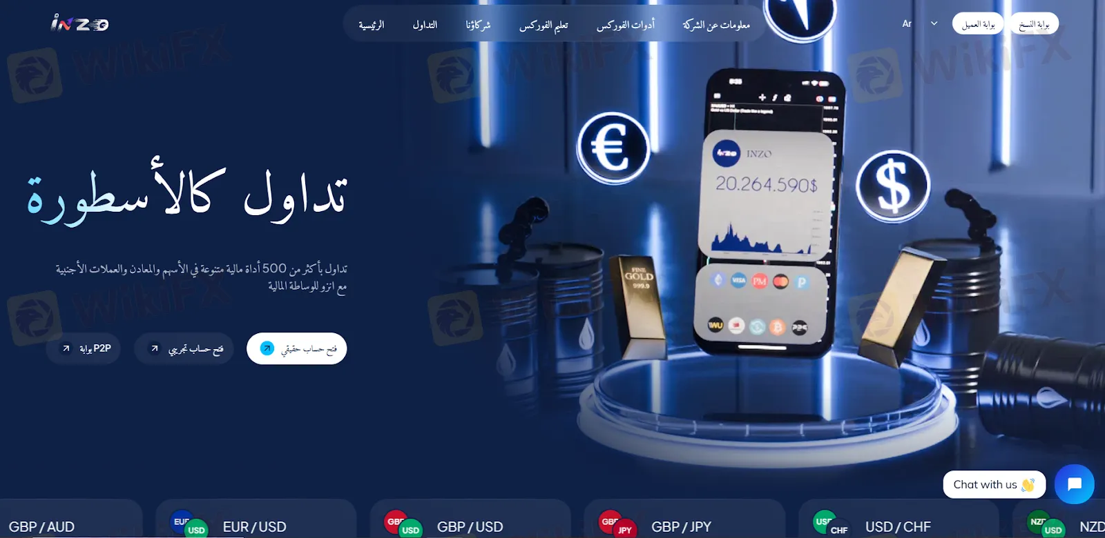 - توفر INZO الوصول إلى الفوركس، المؤشرات، المعادن، والسلع.