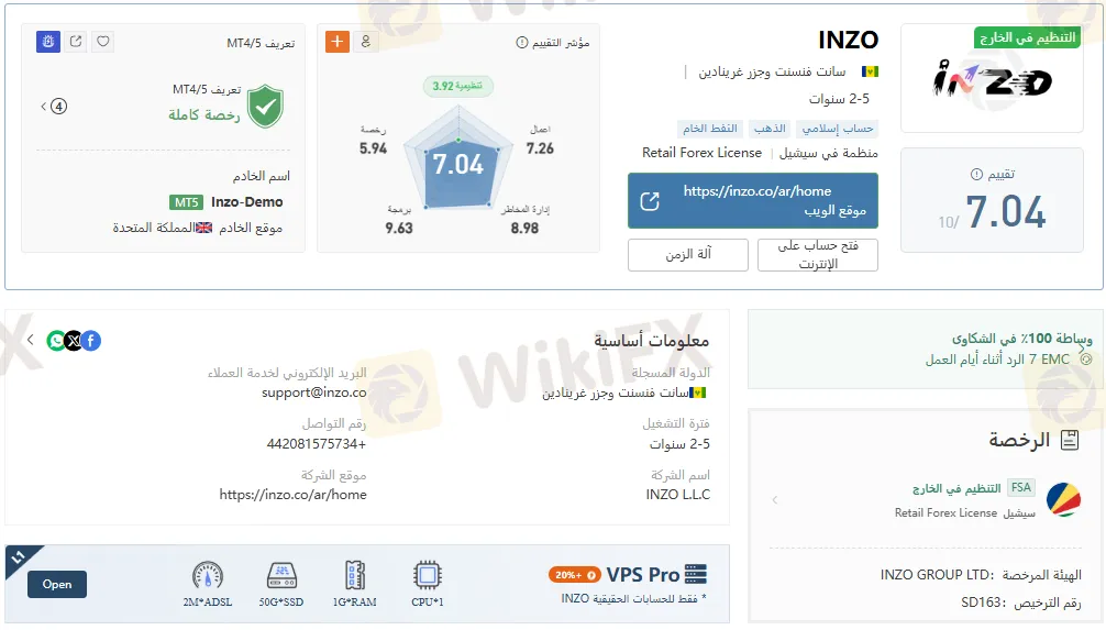 - نعم، شركة INZO مرخصة من هيئة الخدمات المالية في سيشيل (FSA)، لكنها ليست مرخصة من هيئات كبرى مثل FCA أو ASIC. لذا يُنصح بالحذر وتقييم المخاطر قبل الإيداع.