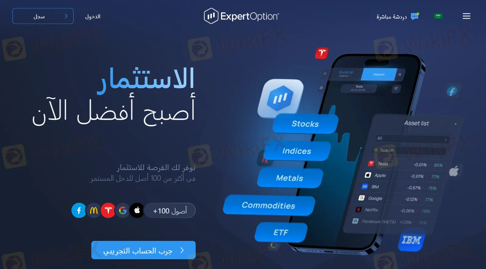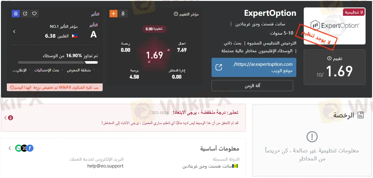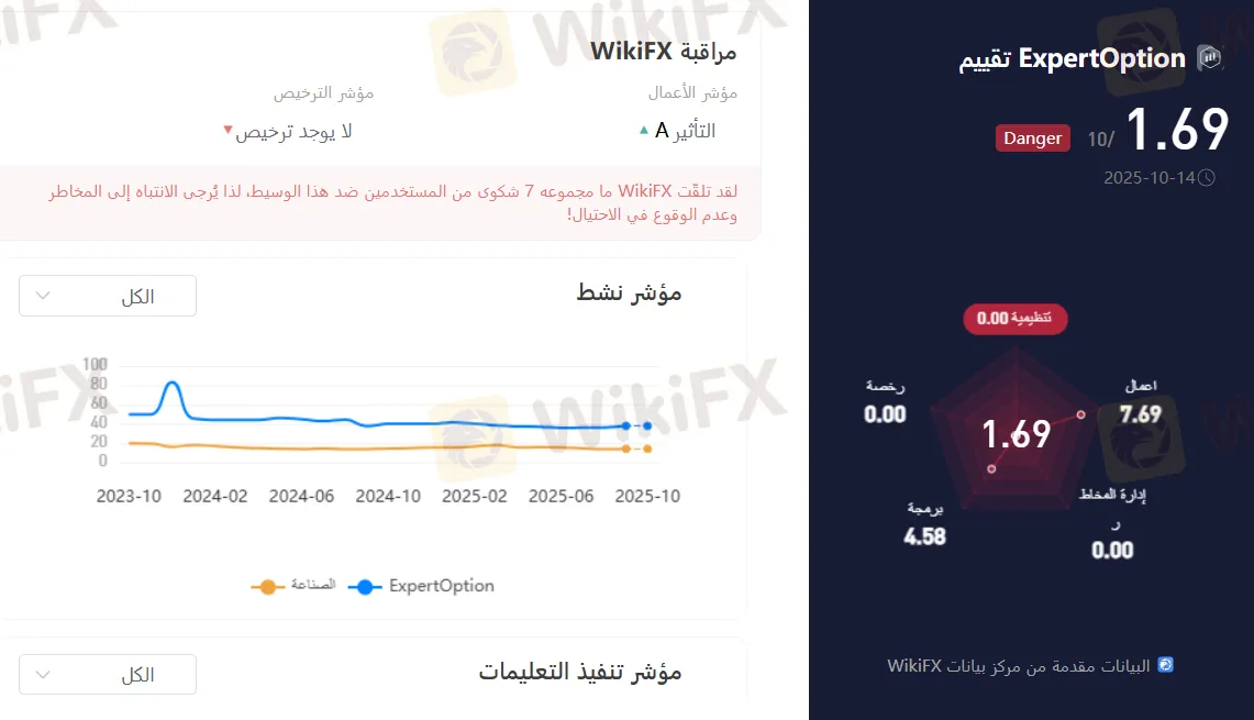 ويُصنِّف ExpertOption كـ شركة عالية المخاطر، مع تحذير واضح للمتداولين بعدم التعامل معها.