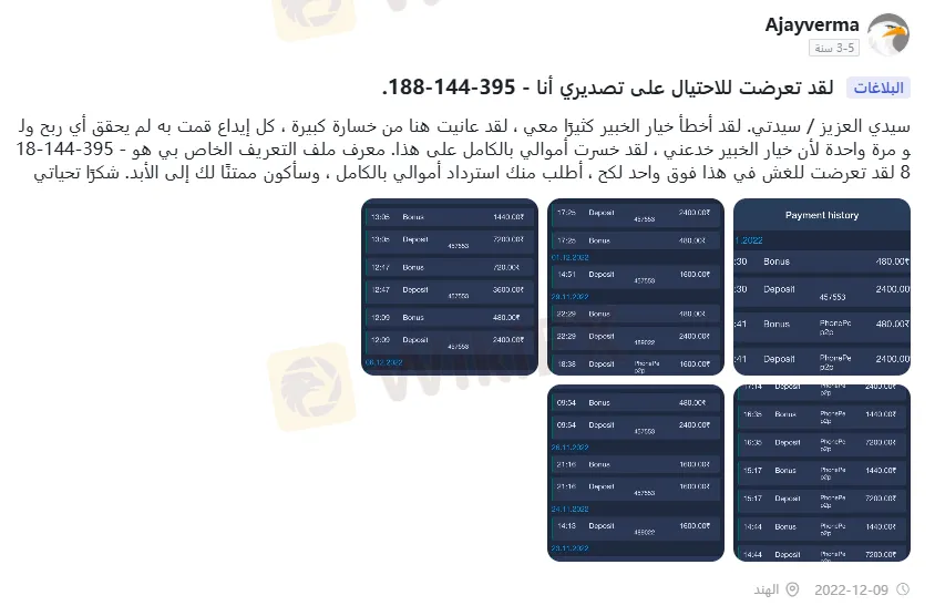 عدد كبير من التقييمات على الإنترنت يصف تجربة التداول في ExpertOption بأنها مخيبة للآمال.