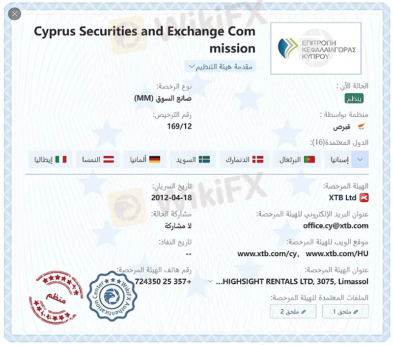 من أبرز أسباب ارتفاع تقييم شركة XTB على WikiFX هو قوة التنظيم والرقابة التي تخضع لها الشركة.