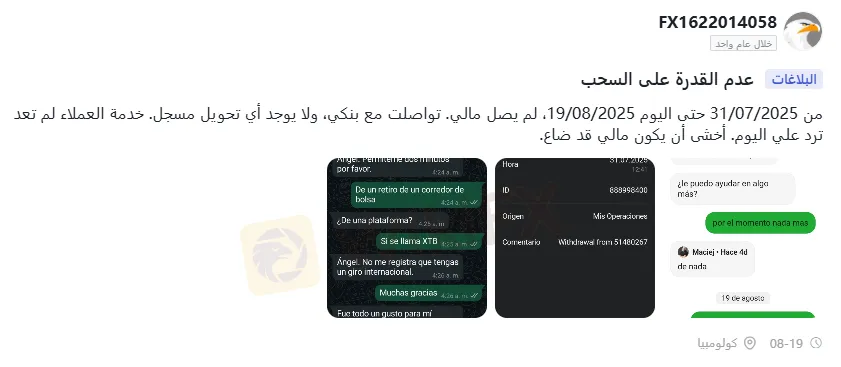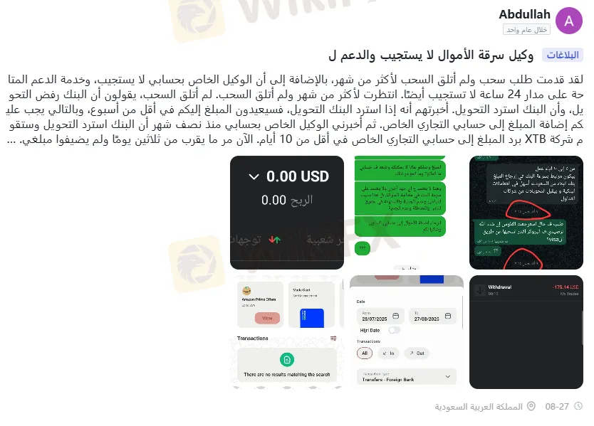 - عند تقييم شركة XTB بعض العملاء اشتكوا من تأخير السحب أو التواصل مع الدعم.