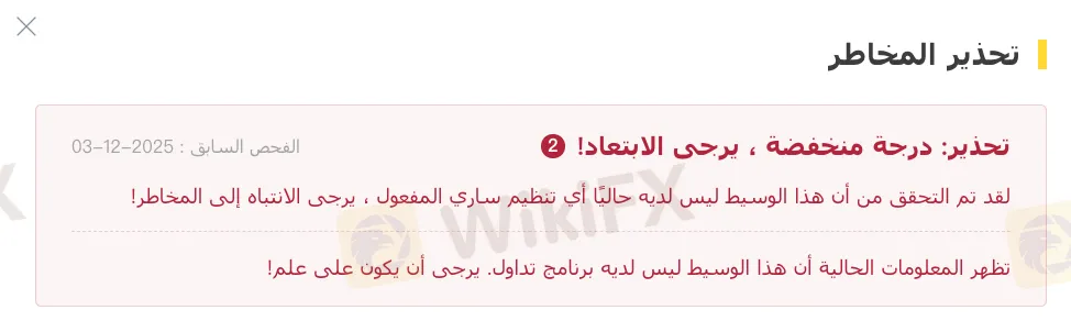 تحليل WikiFX: “لا يوجد تنظيم” وتقييم منخفض