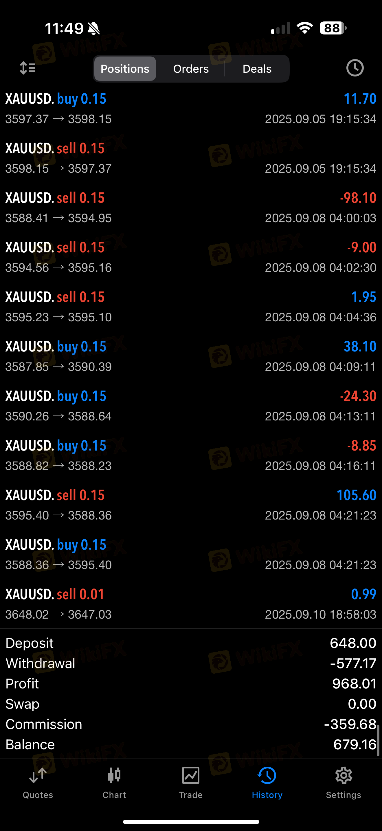 Ich bin mit einer schweren Position eingestiegen. Die Bildschirmaufnahme des Telefons zeigte kontinuierliche Gewinne, aber ich konnte die Position nicht schließen. Beim dritten Versuch, die Position zu schließen, führte die Plattform die Ausführung zu einem Preis durch, der niemals im Markt auftauchte—MT5-Kurse bestätigten, dass es zu diesem Zeitpunkt keinen solchen Preis gab. Dies verwandelte meine Gewinne in Verluste. Als ich den Handelscode anforderte, weigerte sich die Plattform rundweg und sperrte dann mein Konto, wodurch mein Zugriff blockiert wurde. Sie haben alle Beweise vernichtet, aber ich zeichne meine Trades immer auf, daher habe ich vollständige Beweise. Ich hoffe, die Plattform kann mir bei der Verteidigung meiner Rechte helfen! Danke!