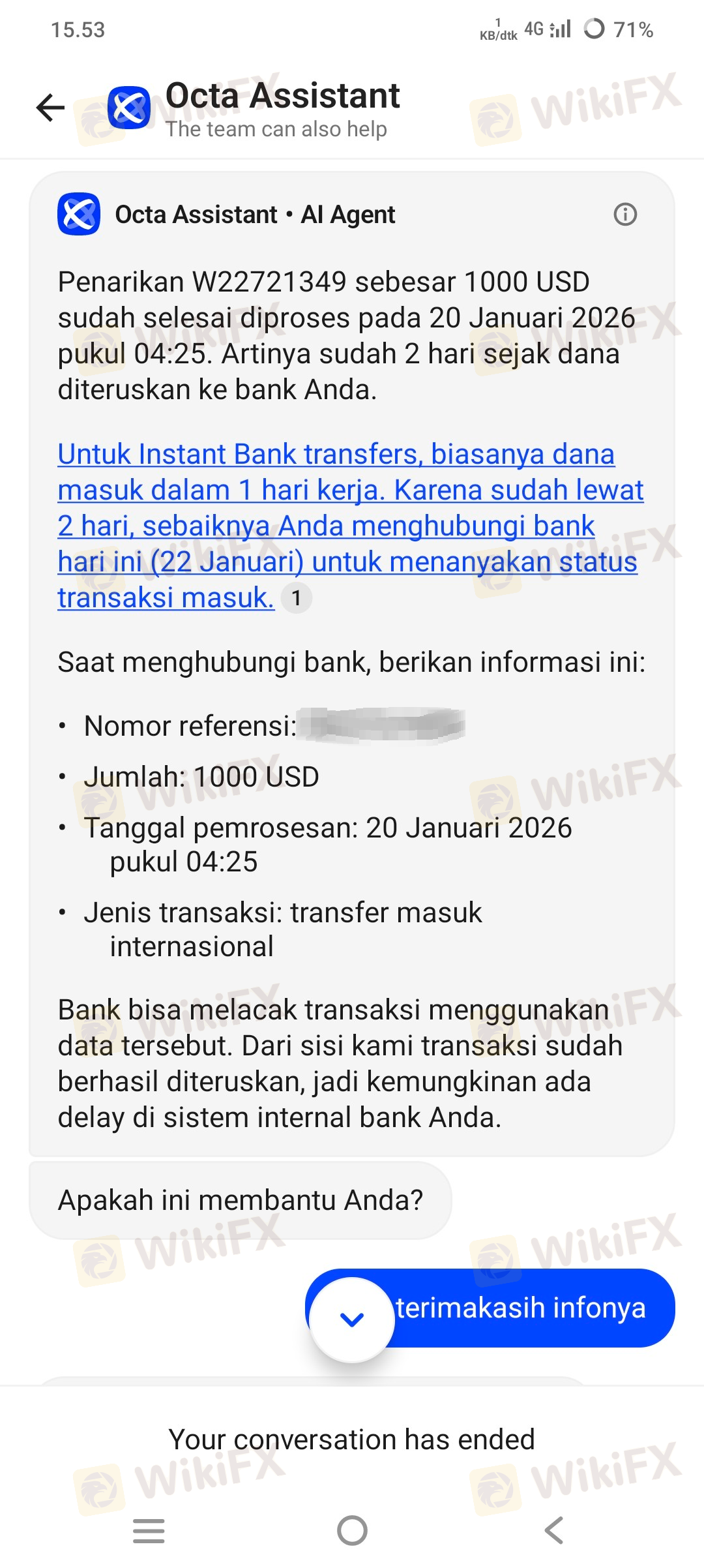 Ich habe Octa etwa 6 Monate lang genutzt, als sie anfingen, Spielchen zu treiben. Ich habe etwa 15.000 USD (Fixkurs) Gewinn gemacht. Als ich eine Auszahlung wollte, haben sie viele Ausreden benutzt, um meine Auszahlung zu verzögern. Einige dieser Gründe sind: Wir müssen mit der Bank überprüfen, wir warten auf den Geldgeber, Feiertagssaison, usw... Und dann, nach einer Woche meiner Auszahlungsanfrage, sagen sie, dass mein Konto wegen verdächtiger Aktivitäten untersucht wird. Ja, die verdächtigen Aktivitäten, auf die sie sich bezogen haben, waren, dass ich viel Gewinn gemacht habe... hahhahaha. Dann wurde mir mitgeteilt, dass sie dies routinemäßig tun, um sicherzustellen, dass die Gelder ihrer Kunden sicher sind. Aber als ich meine Freunde fragte, die Octa benutzt haben, ist ihnen so etwas nie passiert, weil sie viel weniger Gewinn gemacht haben als ich. Und dann, nach fast 3 Wochen, haben sie endlich meinen Auszahlungsantrag genehmigt. Und noch etwas, ihr Kundenservice besteht im Grunde aus Robotern. Sie verwenden gefälschte Namen und Profilbilder. Bitte benutzen Sie Octa nicht.