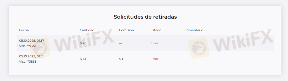 Ich habe versucht, Geld abzuheben und jetzt verlangt die Plattform von mir, alle Karten zu überprüfen, mit denen ich im Laufe der Zeit Einzahlungen getätigt habe, das heißt, sie verlangen von mir Karten von vor mehr als 4 Jahren von Konten, die ich bereits gelöscht oder einfach verloren habe. Es ist ein Betrug, weil sie mir keine andere Möglichkeit geben, mein Geld abzuheben, diese Ratten.