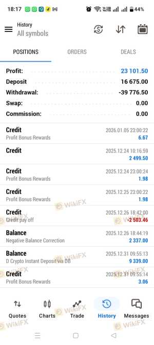 Am 24. Dezember habe ich 4.999 USD mit einem 50% Bonus eingezahlt und verloren – keine Warnungen, keine Probleme. Dann habe ich 9.339 USD eingezahlt und einen Bonus von 4.669,5 USD erhalten. Ich habe Gold basierend auf den USA-Venezuela-Nachrichten gehandelt und Gewinne erzielt. Meine erste Auszahlung von 13.000 USD (immer noch unter meinen Gesamteinzahlungen) wurde ausgezahlt. Nachdem ich weitere Gewinne erzielt und weitere 13.000 USD angefordert hatte, behauptete DBInvesting plötzlich „Bonusmissbrauch“, obwohl ich auf die gleiche Weise gehandelt habe, während ich Verluste machte. Sie haben alle meine Gewinne (23.101,5 USD) entfernt und mein Konto auf Null zurückgesetzt, ohne Nachweis oder vorherige Warnung. Support und mein RM weigerten sich zu helfen. Das sieht aus wie Betrug an Händlern, indem Verluste erlaubt, aber Gewinne blockiert werden. Sie werden niemals in der Lage sein, Gewinne von diesem Betrug Makler abzuheben. Seien Sie äußerst vorsichtig.