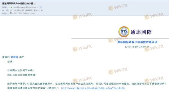 Tongda International manipuliert das Spiel, um von den Verlusten der Kunden zu profitieren. Kunden dürfen nur verlieren. Wenn sie Gewinne erzielen, macht das Unternehmen allerlei Ausreden, um Auszahlungen zu verweigern.