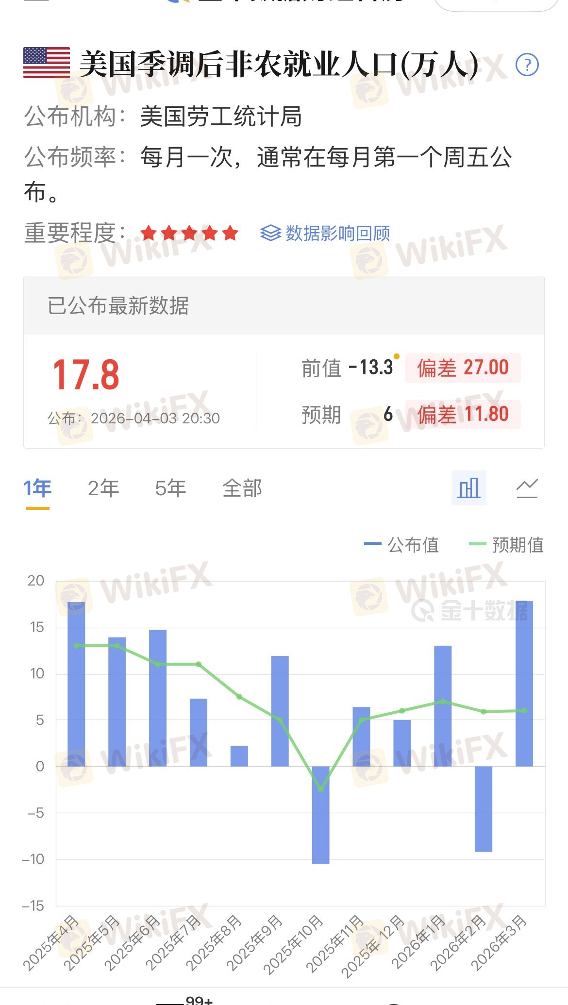 美国3月季调后非农就业人口:17.8万人(预期6万,前值-13.3万修正后)