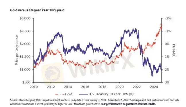 Strong demand for gold from global central banks has led to gold prices no longer being driven by rising real interest rates as usual. Instead of falling as real interest rates rise, gold prices have risen nearly 30% in the year ending Monday, making it one of the best performing assets this year, according to FactSet. Mason Mendez and John LaForge, strategists at Wells Fargo Investment Institute, said the change has more to do with gold than real interest rates, adding that gold has been "particularly sensitive to geopolitical tensions in Ukraine and the Middle East" in recent years.