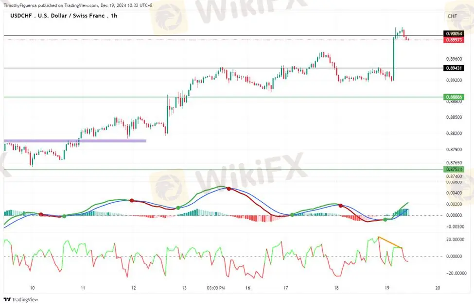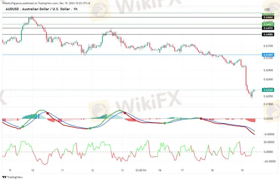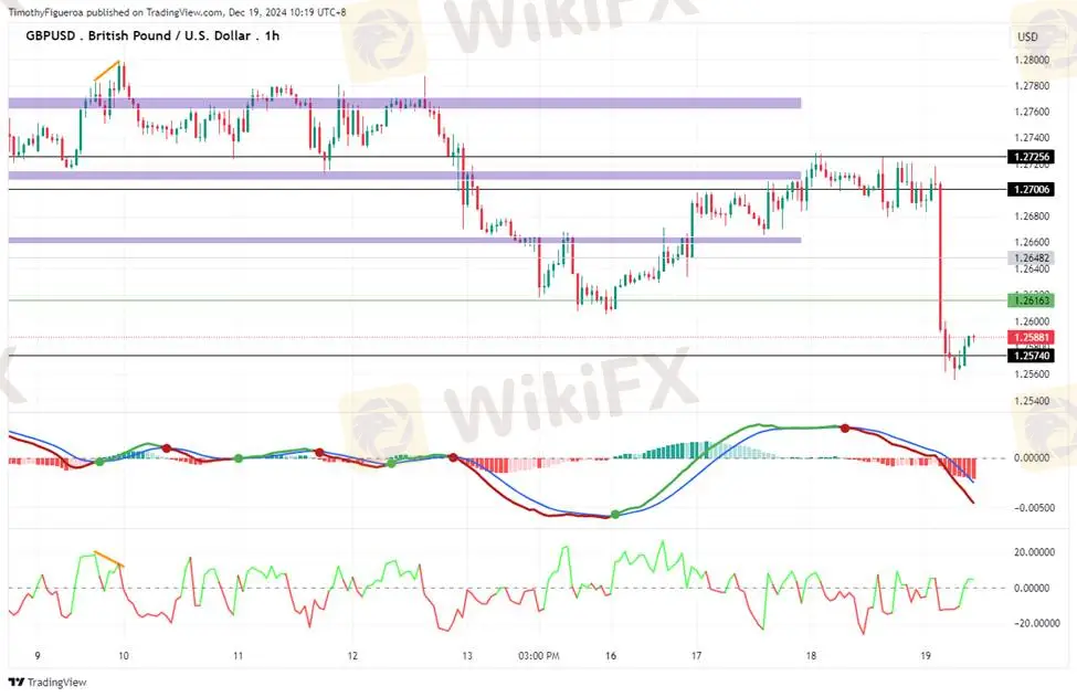 GBPUSD - The pound weakened following the Feds announcement, consistent with expectations for a continuation of the selling trend after prices failed to surpass the previous swing high. The MACD and RSI both show increased selling momentum, with the RSI falling short of reaching oversold conditions, indicating room for further declines.
