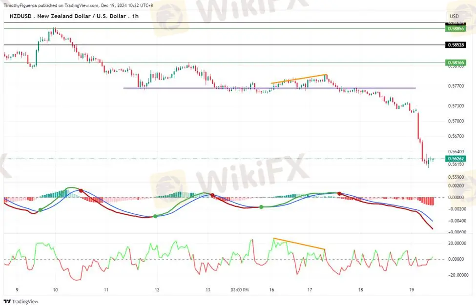 NZDUSD - The Kiwi experienced strong bearish momentum, with the MACD showing increasing strength. However, the RSI remains subdued, failing to fully capture the markets selling intensity and staying in a consolidated state.