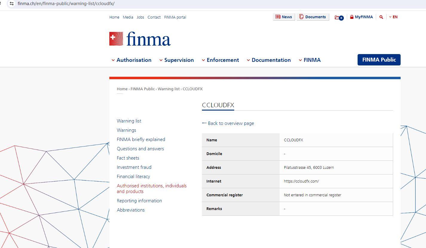 Warnliste nicht autorisierter Unternehmen und Personen Warnliste - https://ccloudfx.com/.