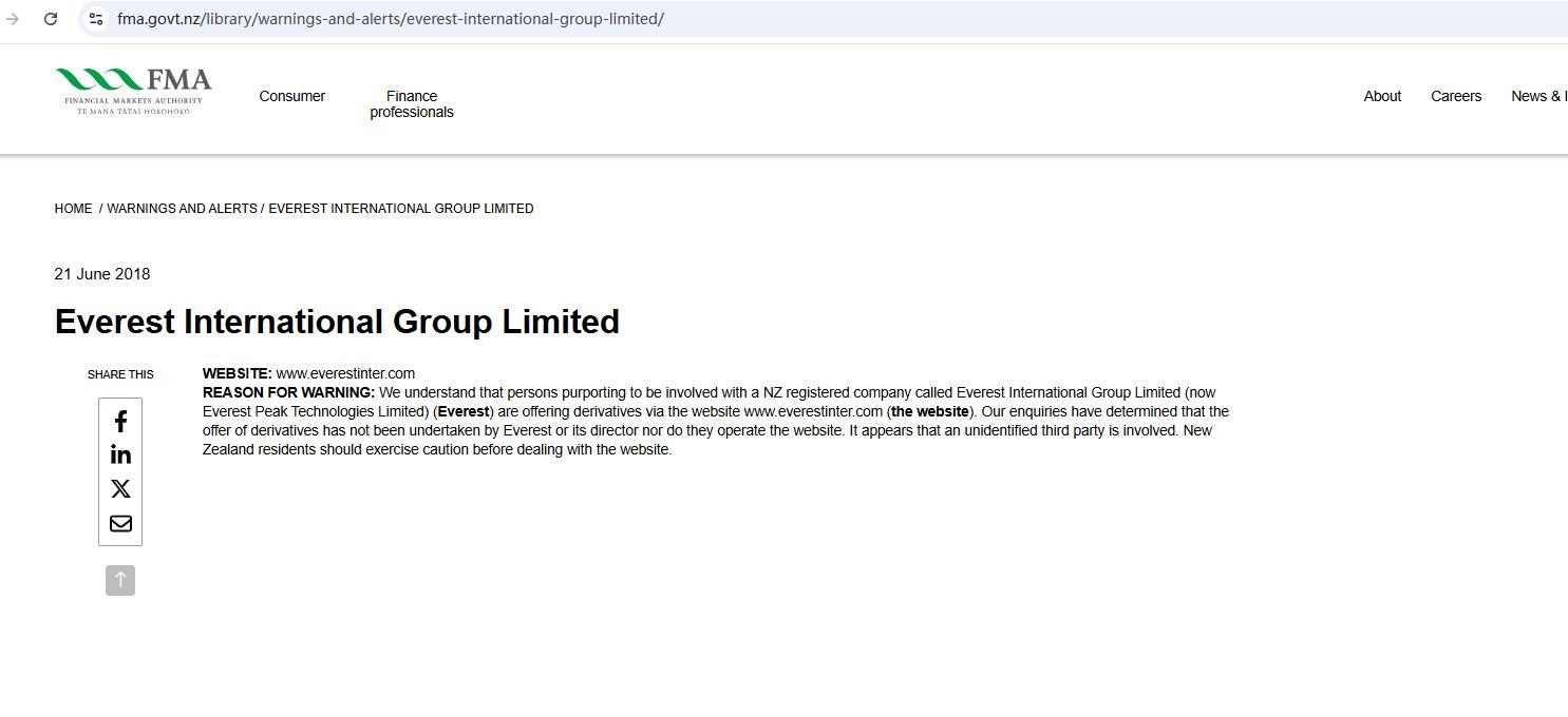 21. Juni 2018 EVEREST INTERNATIONAL GROUP LIMITED Teilen Sie diese Website: www. EVEREST inter.com Grund für die Warnung: Wir verstehen, dass Personen, die vorgeben, mit einem in Neuseeland registrierten Unternehmen namens EVEREST INTERNATIONAL GROUP LIMITED (Jetzt EVEREST Peak Technologies Limited) ( EVEREST ) bieten Derivate über die Website www. an. EVEREST inter.com (die Website). Unsere Untersuchungen haben ergeben, dass das Angebot von Derivaten nicht von EVEREST oder dessen Direktor, noch betreiben sie die Website. Es scheint, dass eine nicht identifizierte Drittpartei beteiligt ist. Einwohner Neuseelands sollten beim Umgang mit der Website Vorsicht walten lassen.