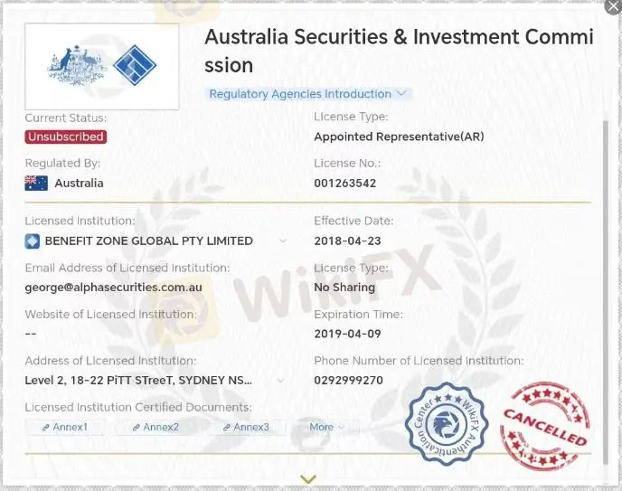| Lizenzierte Institution | BENEFIT ZONE GLOBAL PTY LIMITED |
