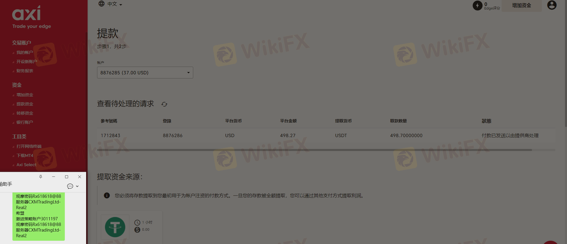 Ein Kunde hat sich beschwert, dass er sein Geld nicht abheben kann vonAxi undAxi gibt viele Entschuldigungen für das Scheitern des Widerrufs. Vielleicht hat er sein ganzes Geld verloren. Bleiben Sie weg vonAxi .