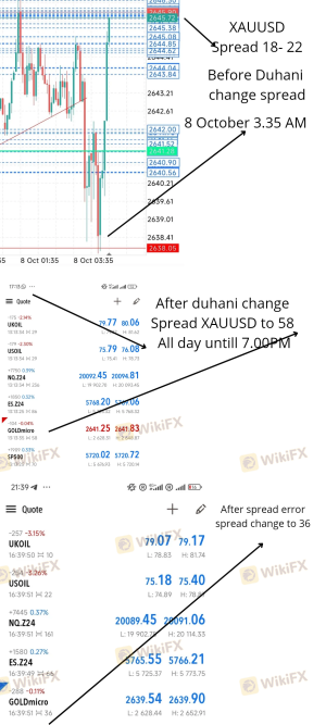 Ich handle das Gold-Paar mit einem Spread von 21, weil das der Standard-Spread ist. Am 8. Oktober wurde der Spread plötzlich von 04:00 Uhr bis 19:30 Uhr auf 58 erhöht und danach auf 35 verringert. Das bedeutet, dass sie den Spread/die Wartung ohne Benachrichtigung der Kunden geändert haben, was zu Verlusten für mich geführt hat. 1. Ich kann meine Gewinne von 1000-1200 $ nicht abheben, weil meine Losgröße nicht ausreicht. 2. Beim Eröffnen neuer Positionen hatte ich Slippage, wodurch sie weit entfernt wurden. 3. Die Stop-Loss (SL)-Positionen waren weit entfernt eingestellt, wurden aber sowohl im Gold-Paar als auch bei ÖL ausgelöst. 4. Ich habe Gewinne aus meinen Positionen erzielt, aber anstatt zu steigen, hat sich mein Eigenkapital verringert. Ich habe eine Beschwerde eingereicht, weil klar ist, dass sie einen Fehler gemacht haben, und nicht nur ich habe dies erlebt, sondern auch andere Trader. Allerdings haben sie es ignoriert, weil die Verluste gering waren. Ich habe ausreichend Foto- und Videobeweise, aber sie weigern sich immer noch, Verantwortung zu übernehmen und sind nicht fair wie andere Unternehmen. Details sind auf meiner Commun verfügbar.