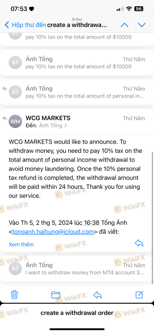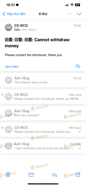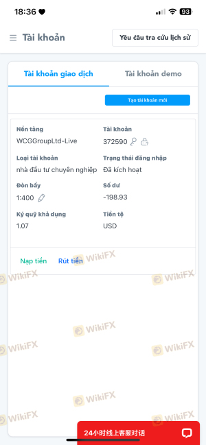 Ich habe auf das WCGGroupLtd-Plattform-Live-Konto 372590 18000 USD eingezahlt, konnte dann aber nicht abheben und habe das gesamte Geld auf dem Konto verloren.