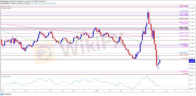EUR/USD consolidates as the Federal Reserve ramps up its effort to support the US economy, but the exchange rate may continue to give back the advance from the 2017 low (1.0340) as the US Dollarbenefits from the flight to safety.