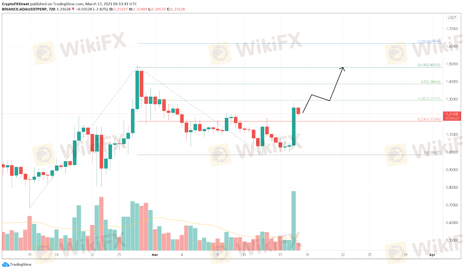 Cardano price has seen a massive surge in buyers leading to a 20% increase in a single 12-hour candlestick. Now, ADA is hovering below a critical supply barrier at $1.29, which coincides with the 38.2% Fibonacci retracement level.