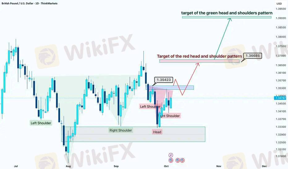 The green H&S pattern was already completed earlier, and its neckline has been broken to the upside, signaling the start of a potential medium-term bullish trend. The pattern’s measured target points toward the 1.3900 zone, which remains the broader bullish objective