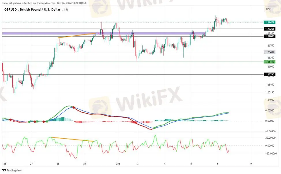 The Pound strengthened following the Dollar's decline. The MACD reflects this positive momentum, with overall price movement supporting the bullish trend. Notably, the RSI displays divergence, with a decline in momentum despite rising prices, suggesting some hesitation. A continuation of the buying trend is anticipated, though data released later today will likely influence the market as it adjusts to FED expectations.