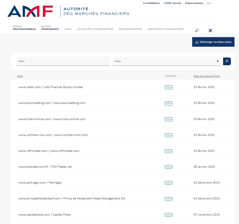 Dies ist eine Liste der von der Autorité des Marchés Financiers (AMF) auf die schwarze Liste gesetzten Unternehmen oder Websites, Warnungen und/oder Usurpationen regulierter Unternehmen.