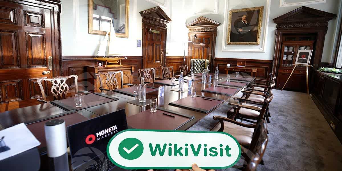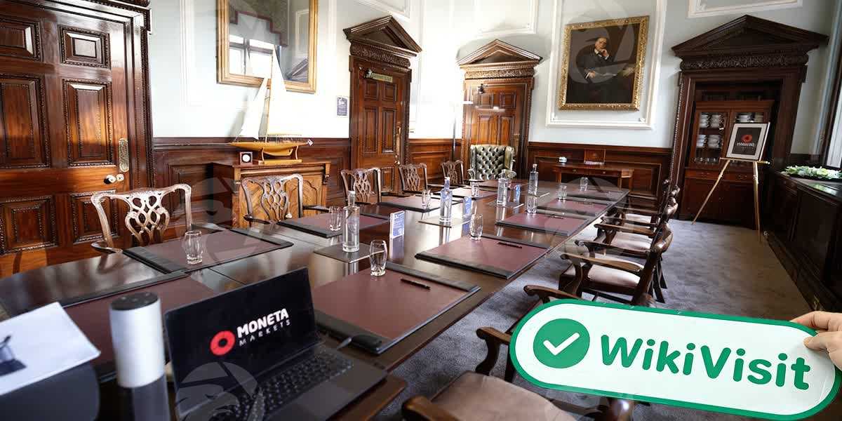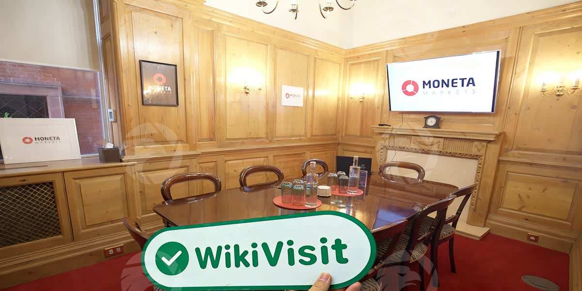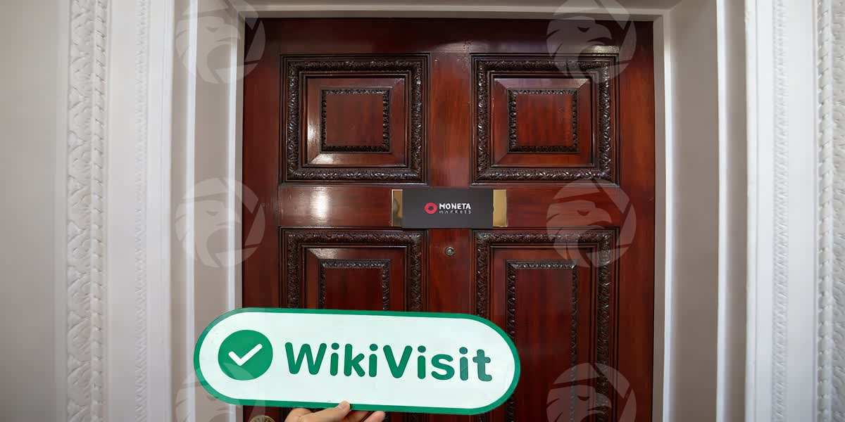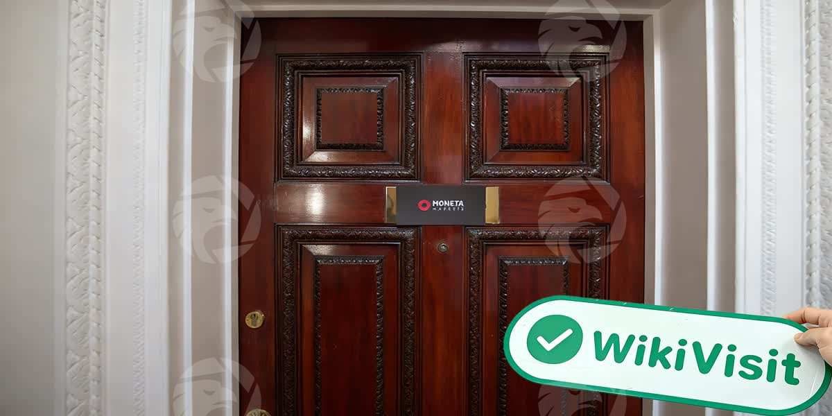 Das Logo von Moneta Markets UK, obwohl weniger visuell auffällig als die Markenpräsenz in anderen Regionen weltweit – ein „schwarzer Hintergrund mit weißem Text und einem Hauch von Rot“ – wirkte als kleines Namensschild auf der schweren, historischen Holztür noch standhafter und würdevoller.