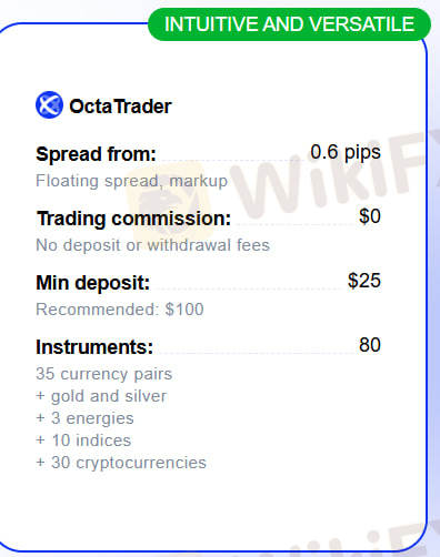 I went for the octatrader account, not MT because that platform is so basic. They didn’t change it for years, of course I would go for the octa one that even has an AI in it. That makes trading more interesting imho. Apart from the platform, what is great about it is also the fees. That’s like the standard acc, they don’t have others, but the fees are tighttt. Spreads be max at 1 pips.