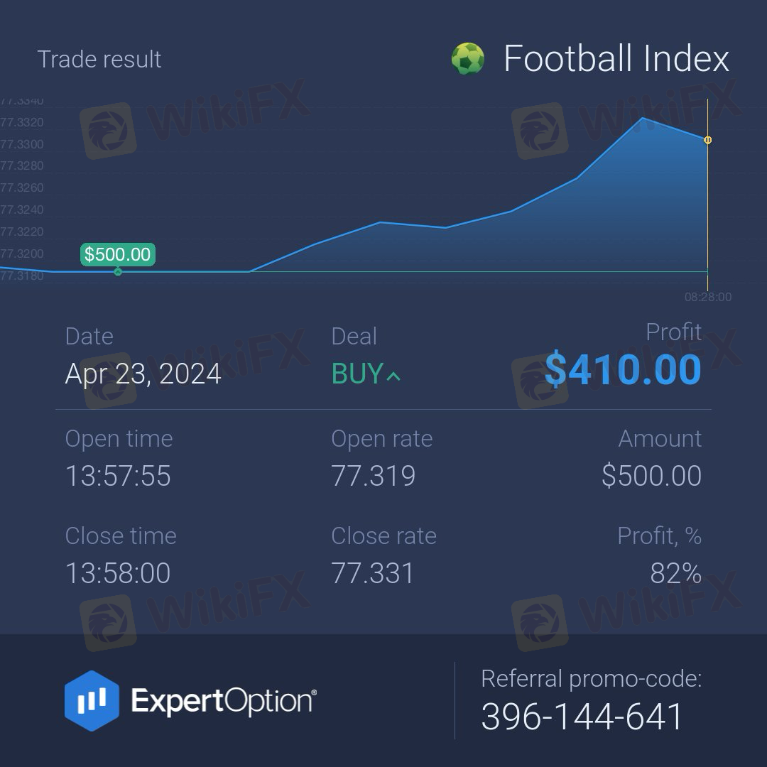 I've been trading on ExpertOption for a few months and I’m impressed with how intuitive and fast the app is. From making deposits to executing trades and withdrawals, everything is streamlined. Each trading session, whether successful or not, has been a valuable lesson, helping me to refine my strategies and improve. It’s encouraging to see my progress as I navigate through the complexities of trading.