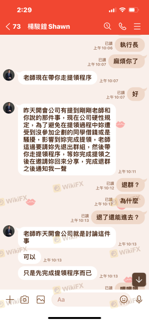 The CEO and secretary induced investors to take profits, and parents in the community also shared their experiences. After the execution, the CEO will ask you to leave the group. And then I'm unable to withdraw money for various reasons.