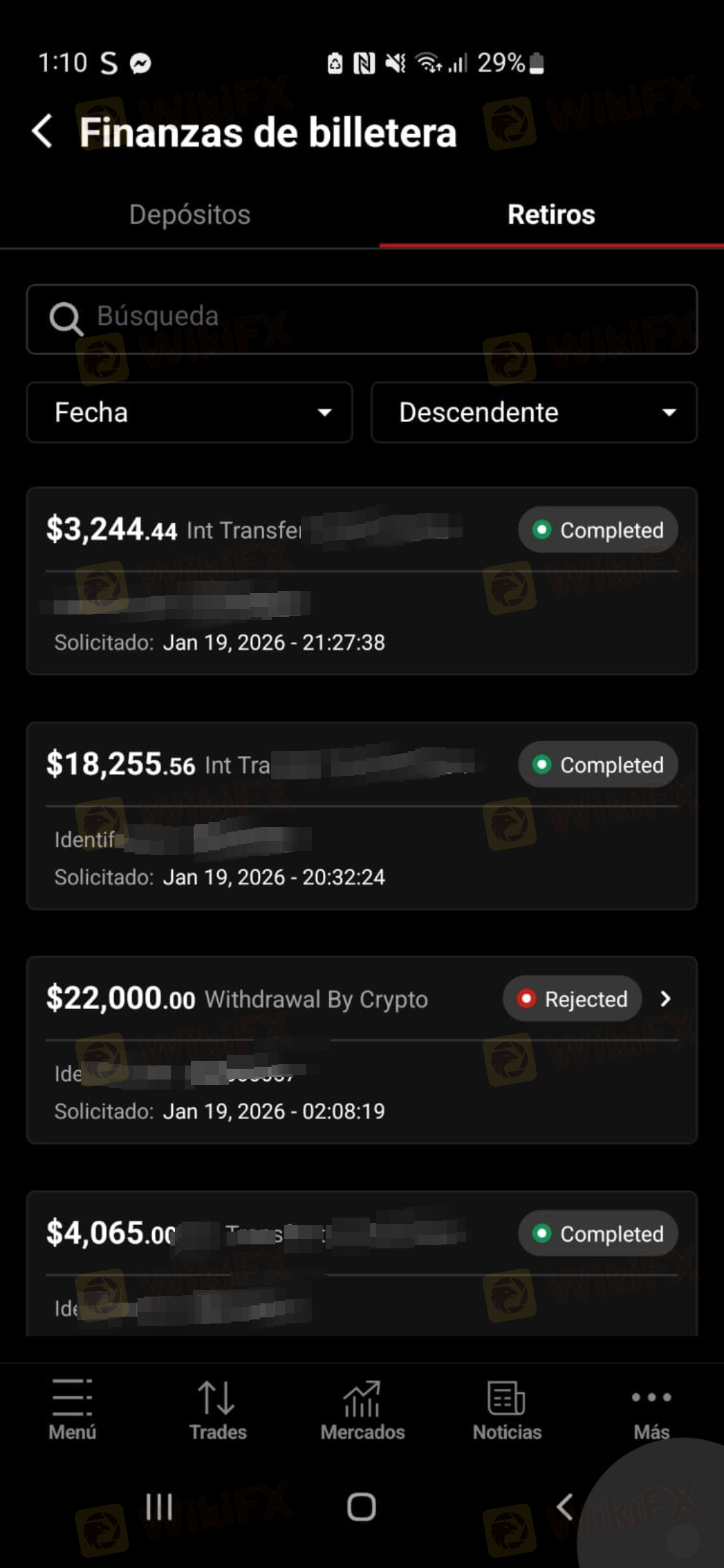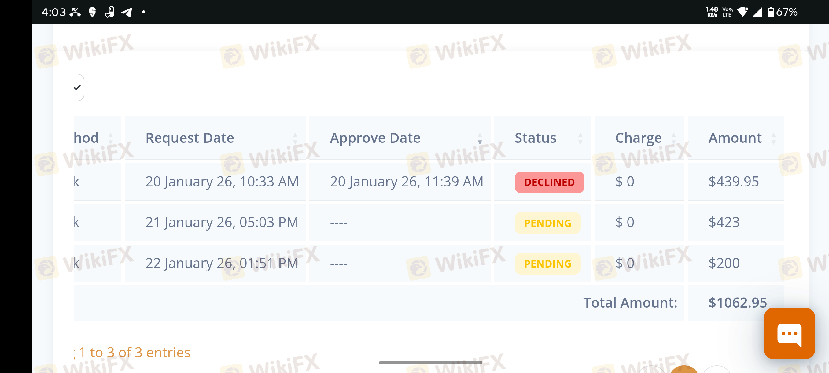 The withdrawal request was submitted a maximum of 24 hours ago, but there has been no follow-up after more than 24 hours. After 2 days, the withdrawal was canceled by the broker and the balance was returned to my wallet. After that, I made another withdrawal request, but 24 hours later, I am still waiting for the funds to be transferred to my account.